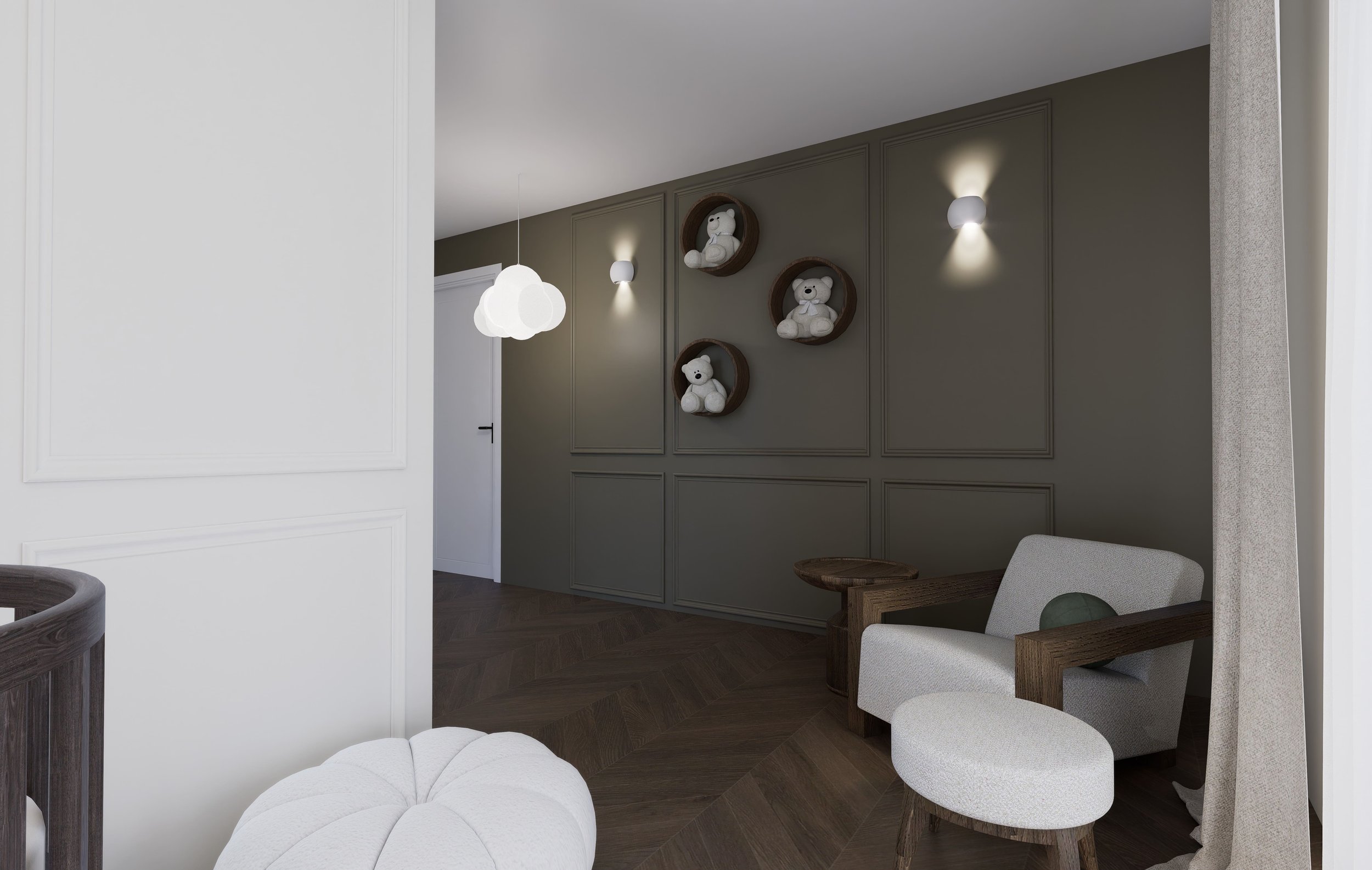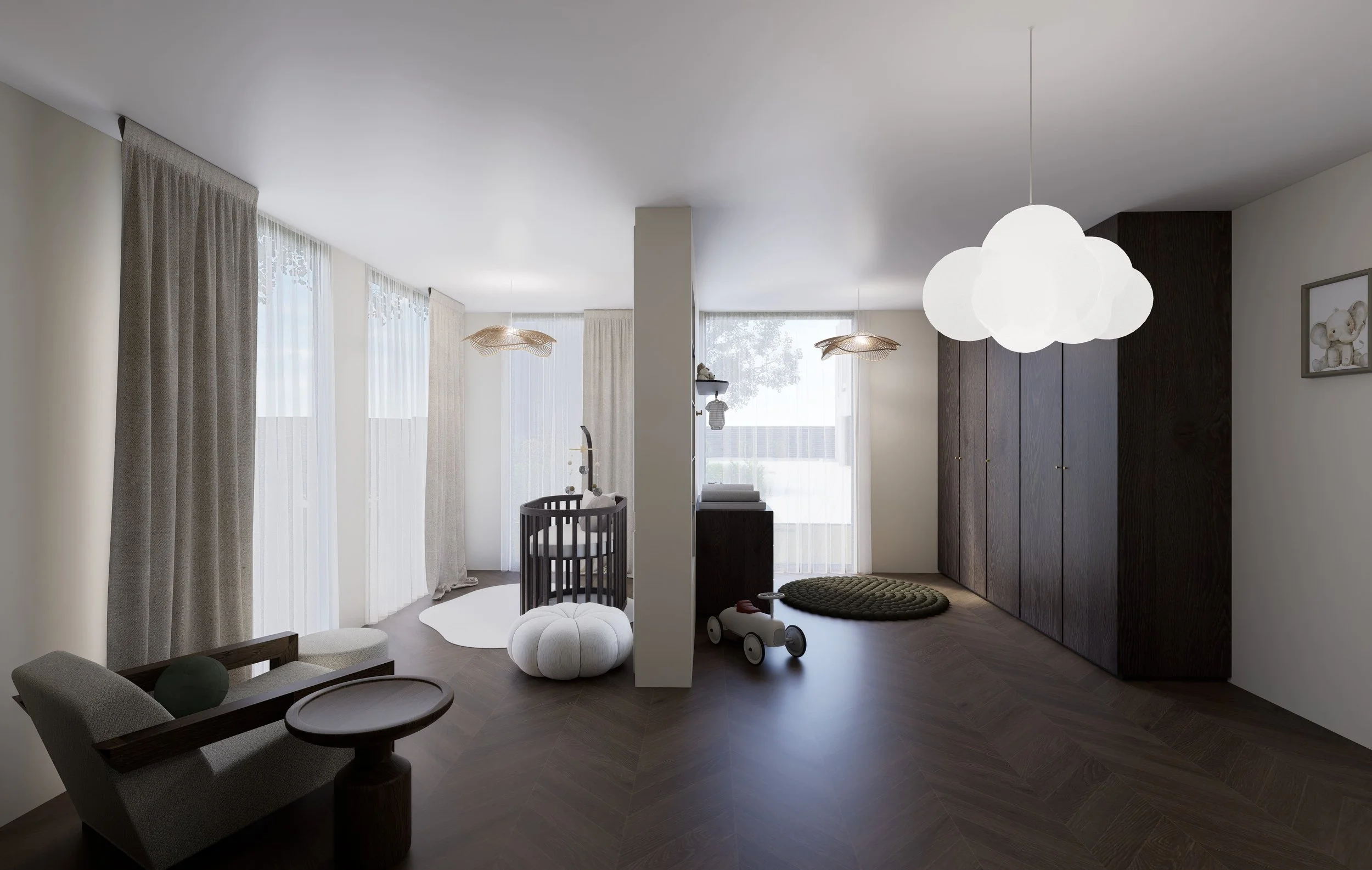 Voor een commercieel project van deze prachtige nieuwbouwwoning mochten wij het interieurontwerp realiseren voor de babykamer. Onze opdracht omvatte het ontwerpen van een sfeervolle en functionele ruimte waarin zowel de baby als de ouders zich thuis voelen. Met oog voor detail en functionaliteit hebben we ervoor gezorgd dat elk aspect van de kamer voldoet aan de wensen en behoeften van de bewoners, terwijl we tegelijkertijd een stijlvol en comfortabel leefgebied hebben gecreëerd.