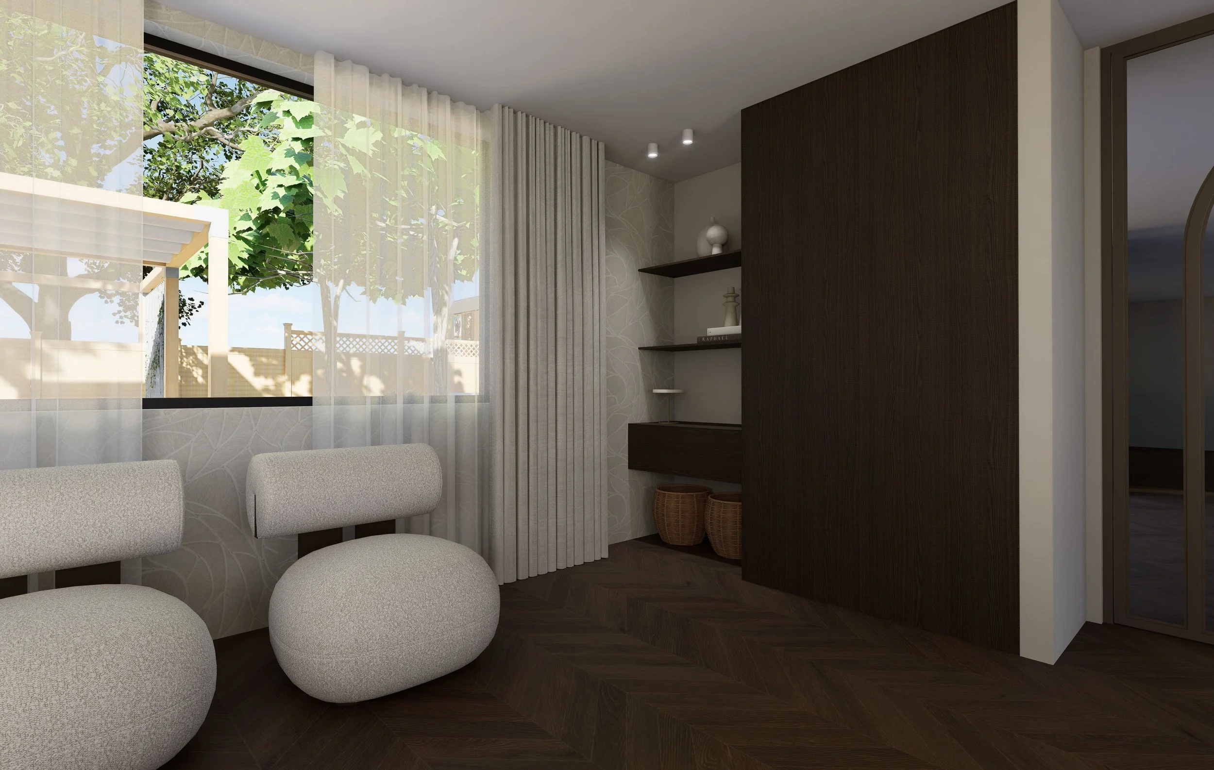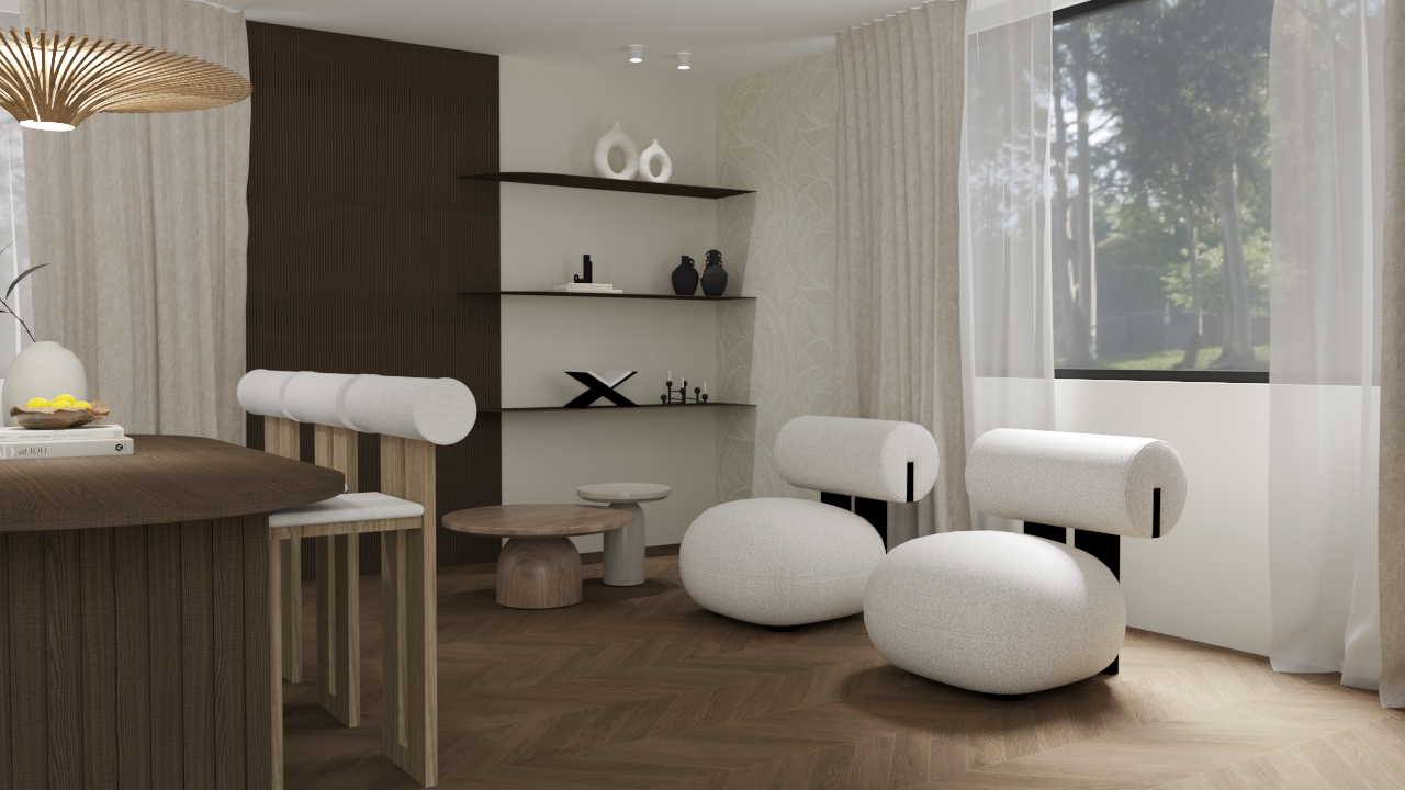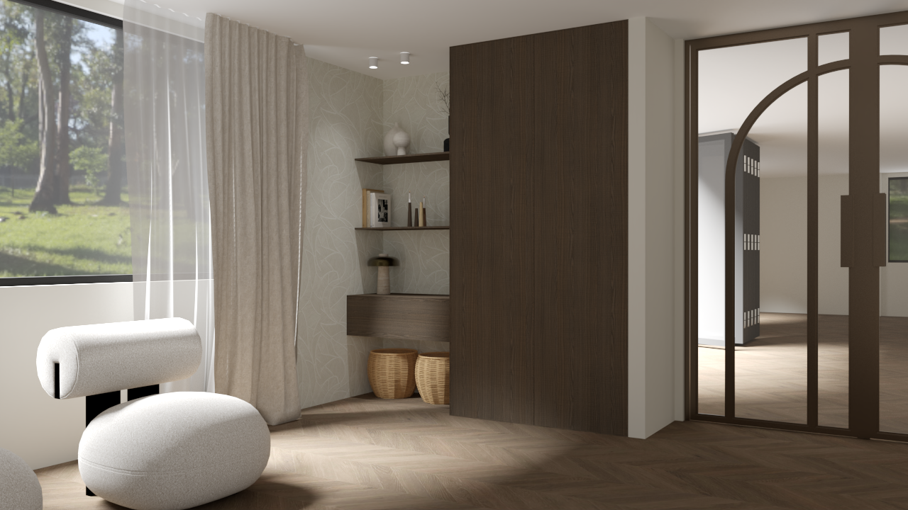 Tijdens ons eerste gesprek met de opdrachtgevers bespraken we uitvoerig hun voorkeuren en behoeften. We stelden enkele ontwerpideeën voor, waarbij we kozen voor een combinatie van minimalistische en Japandi-elementen. Deze stijlmix combineert de strakke lijnen en eenvoud van het minimalisme met de warmte en natuurlijke materialen van de Japandi-stijl, wat zorgt voor een rustige en harmonieuze uitstraling.